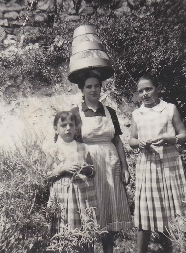 Doña Concha Castroman con algunha das suas fillas, a de abaixo a esquerda parecenos Isabel. A moza da dereita diante de todo creemos que é a que logo casaria con Juansete, tia de Mari Carmen e Rosina Diz (entre outras)