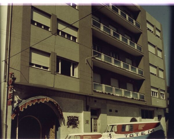 No barrio de Santa Lucia, no edificio propiedade de Edelmiro Crespo, empleado de Transmediterranea, do Carril. Totem marcou estilo nunha Vilagarcia conservadora na sua forma de vivir.