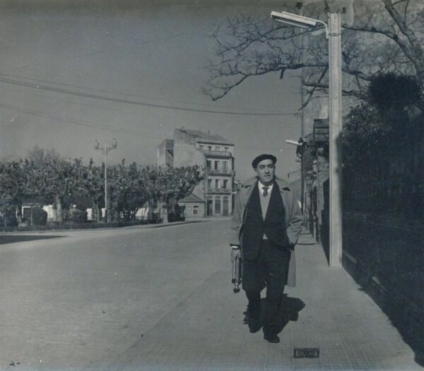Paco un home moi culto da familia de relojeros Chirinos, con taller na rua Padre Feijoo. Paco era un enamorado da fotografia, do teatro, e de Mary a sua dona. O vemos na imaxen por diante da casa de Pintos, como fondo a esquerda o Xardin de Ravella, o Bar Campos e o edificio donde vivia Paco, os Petinal e os Casalderrey.