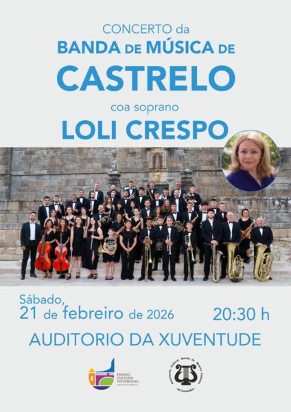 Loli Crespo, voz potente, armoniosa e dulce, actua no Auditorio de Cambados o proximo sabado, acimpañada pola Banda de Musica de Castrelo, Non perder a ocasion de escoitala, merece a pena, será un concierto maravilloso como todos os de Loli, todo un luxo voltar a escoitala