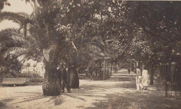 En portada a Praia Compostela cando era praia con un xardin marabilloso.