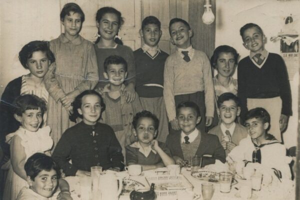 Na casa como eran entonces as comunions, con churros e chocolate, a dereita Enrique, o bó musico cos amiguiños.