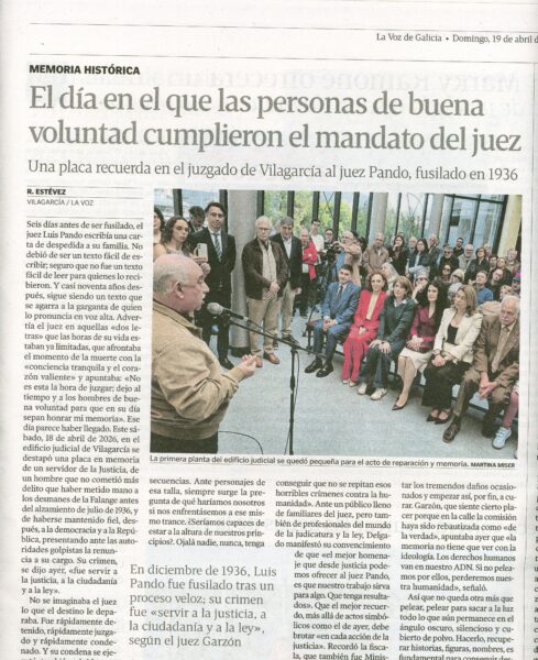O sabado dia grande de inauguracion na sede dos xuzgados da praca adicada a memoria do Xuiz Pando.